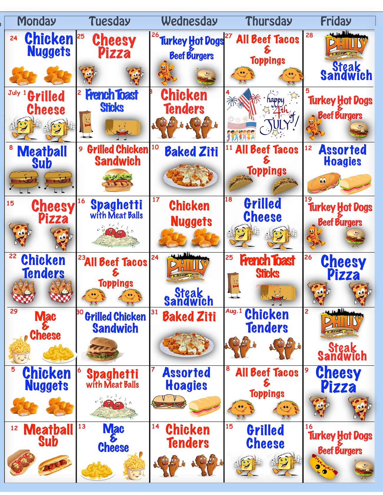 A couple of things to note: (1) we are a peanut aware camp and thus we do not have any peanut butter on our campus, (2) we provide a birthday cake for campers so we have control as to what is served at camp, (3) we do not permit any “outside” treats to be brought into camp and (4) we maintain nutritional fact sheet binders … provided by our distributor on all foods served at camp, which are available to look over at your convenience.